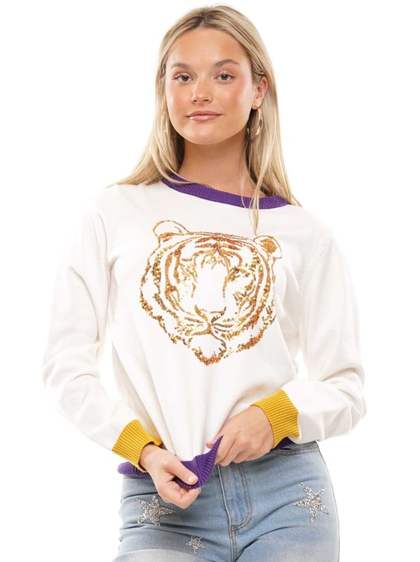 Color: White With Purple Collar Neck Detail & Gold Arm Cuffs