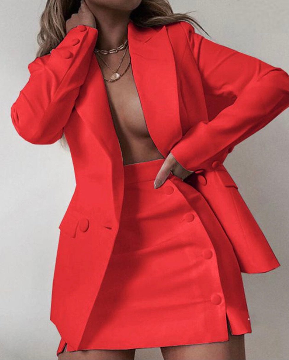 đź’‹Two-Piece Blazer Set đź’‹Color: Red đź’‹Front Button đź’‹ Mini Skirt đź’‹Long Sleeves đź’‹Imported đź’‹True To Size
