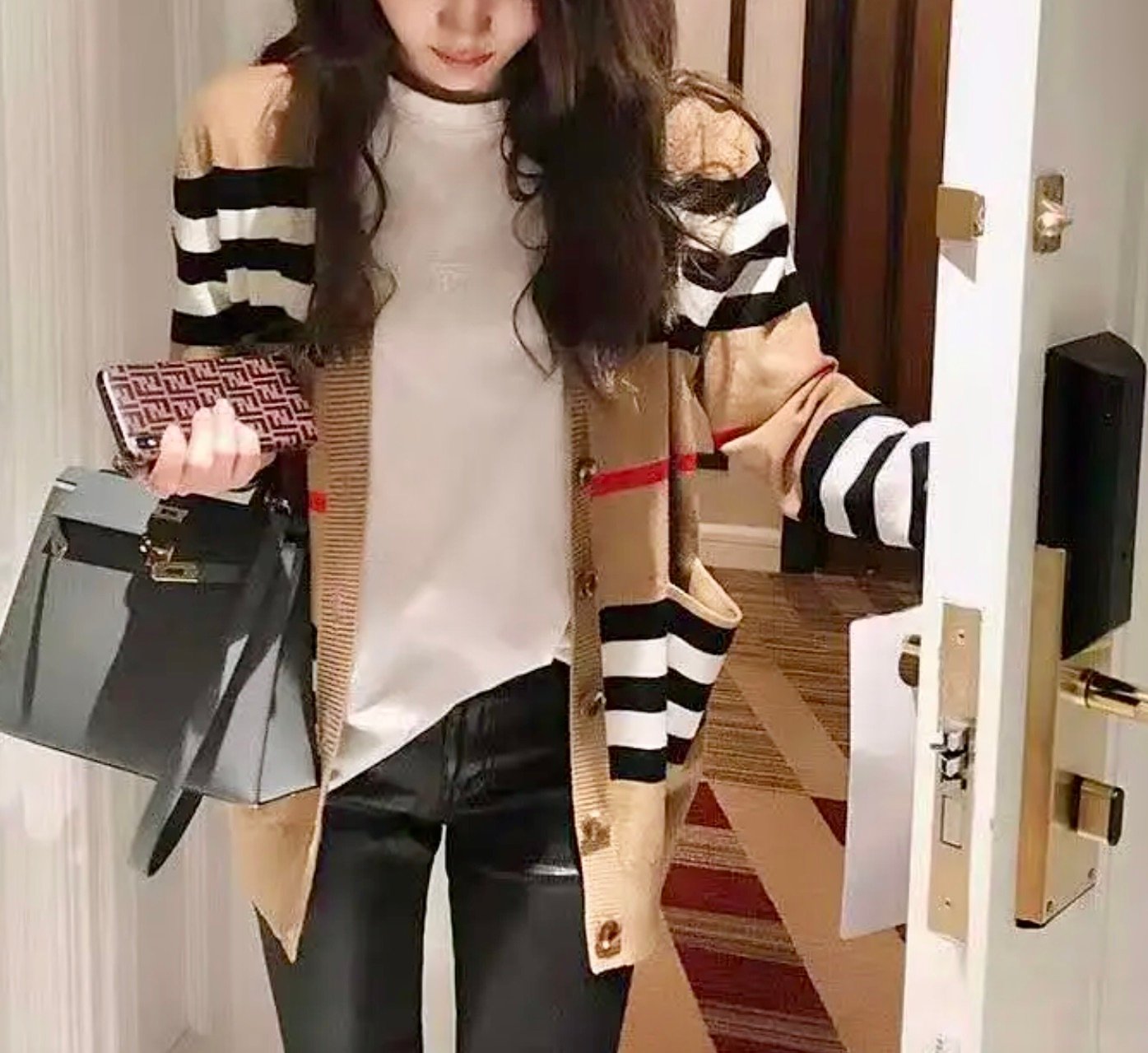 š Cardigans Sweater š Color: Tan, Black, White And Red š Front Button Fastening š Long Sleeve š Open Front š Knit š Imported