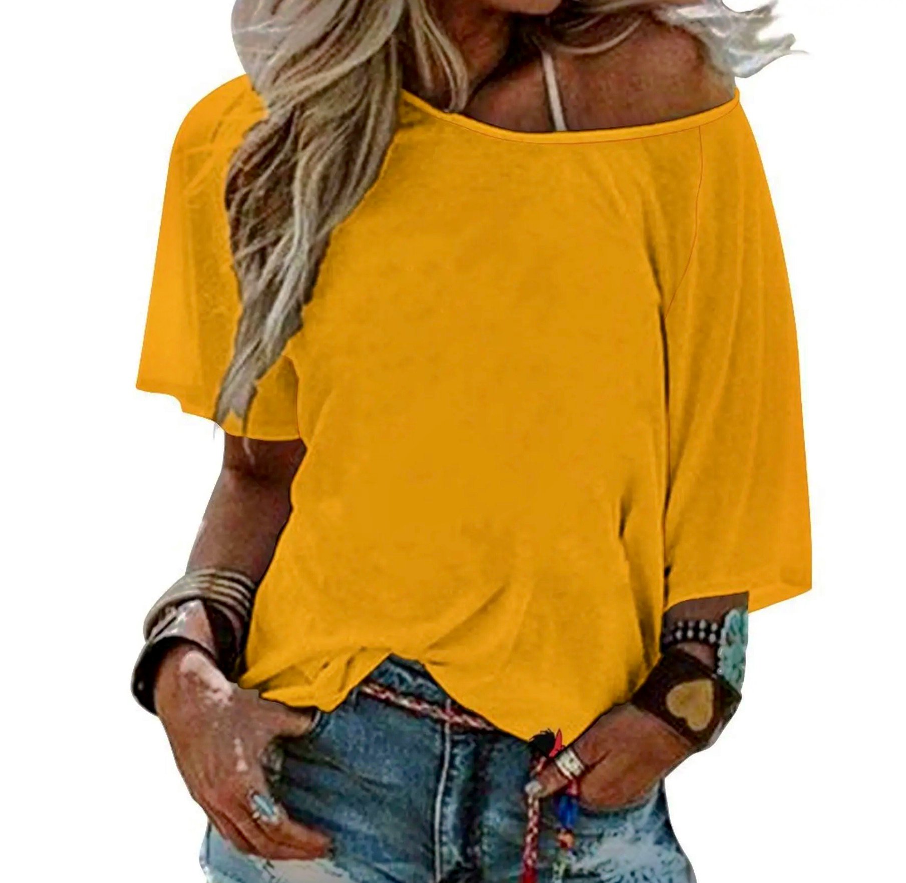 š Off Shoulder Top š Color: Yellow š Short Sleeve š Off Shoulder š Fabric: 95% Rayon+5% Spandex š Fit Type: Loose Fit š Imported